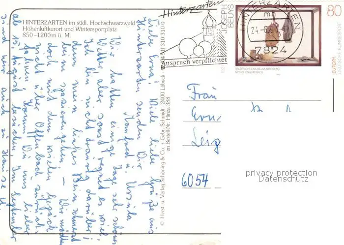 Hinterzarten Panorama Kurort im Schwarzwald Bahnhofsplatz Kirche Kesslerhof Kapelle Hotel Adler Skisprungschanze Hinterzarten postalisch gelaufen 1993 Erhaltung siehe scans [FriedD77] Frierer
