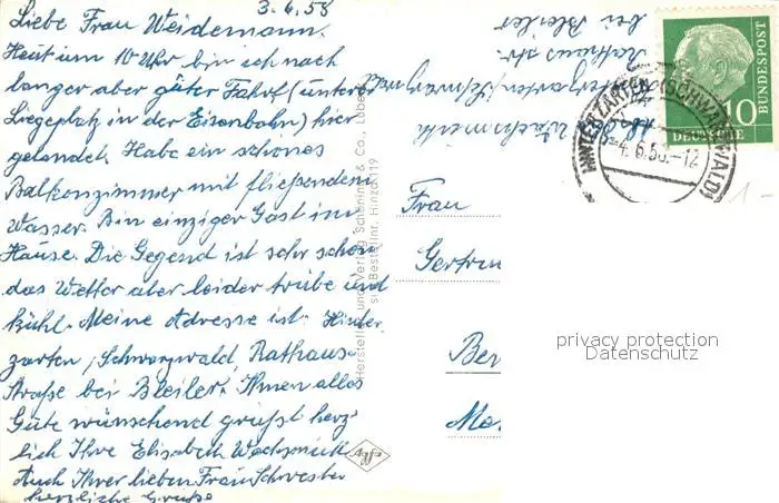 Hinterzarten Rundweg Ravenna-Wasserfall Viadukt Hinterzarten postalisch gelaufen 1958 Erhaltung siehe scans [NatalD47] NataID47