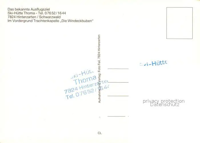 Hinterzarten Skihuette Thoma Ausflugsziel Schwarzwald Trachtenkapelle Die Windeckbuben Hinterzarten postalisch nicht gelaufen nach 1965 Erhaltung siehe scans [FriedD77] Frierer