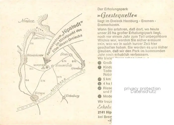 Hipstedt Erholungspark Geestequelle Spielplatz Reithalle Hipstedt postalisch nicht gelaufen nach 1965 Werbekarte (keine Postkarte) Erhaltung siehe scans [WerneD78] Werbekarte (keine Postkarte) WernPID7