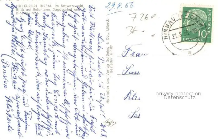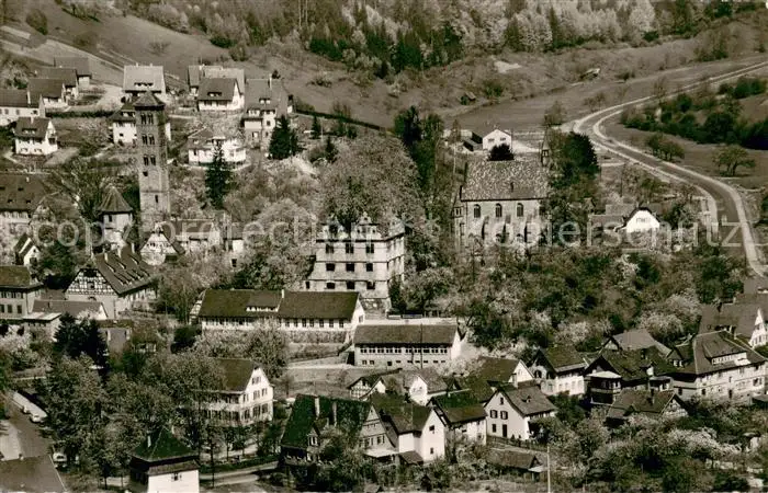 Hirsau Kategorie Alte Ansichtskarten Postkarten bx93046 Hirsau Ortsansicht mit Eulenturm Jagdschloss und Klosterkirche Hirsau postalisch gelaufen 1956 Erhaltung siehe scans [WerneD78]