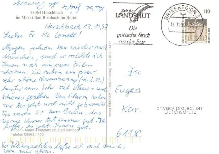 Hirschbach Niederbayern Kategorie Alte Ansichtskarten Postkarten bx52635 Hirschbach_Niederbayern Fliegeraufnahme Hirschbach Niederbayern postalisch gelaufen 1997 Erhaltung siehe scans [FriedD77]