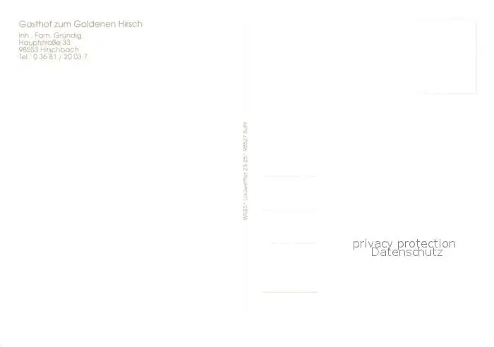 Hirschbach_Schleusingen Gasthof zum goldenen Hirsch Restaurant postalisch nicht gelaufen nach 1965 Erhaltung siehe scans [FriedD77] Frierer