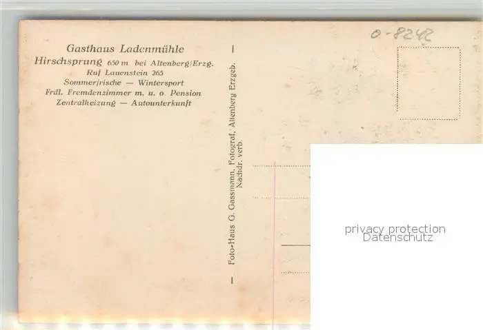 Hirschsprung Gasthaus Ladenmuehle Hirschsprung postalisch nicht gelaufen 1921-1965 Erhaltung siehe scans [FriedD77] Frierer