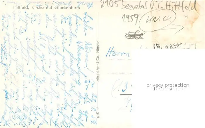 Hittfeld Kirche mit Glockenturm Hittfeld postalisch gelaufen 1959 Erhaltung siehe scans [LiesaD40] LiesID40