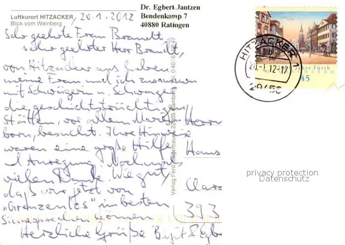 Hitzacker_Elbe Blick vom Weinberg Hitzacker Elbe postalisch gelaufen 2012 Erhaltung siehe scans [WerneD78] WernPID7