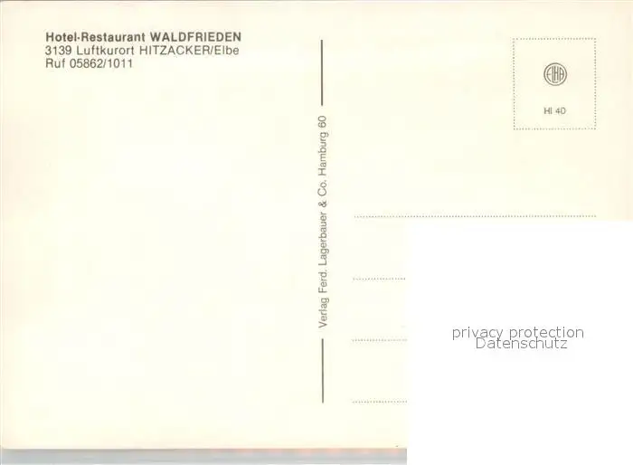 Hitzacker_Elbe Hotel Restaurant Waldfrieden Hitzacker Elbe postalisch nicht gelaufen nach 1965 Erhaltung siehe scans [KathaD81] Kathoren