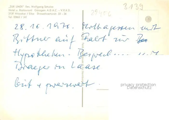 Hitzacker_Elbe Hotel-Restaurant Zur Linde Hitzacker Elbe postalisch nicht gelaufen 1970 Erhaltung siehe scans [PaolaD17] PaolPID1