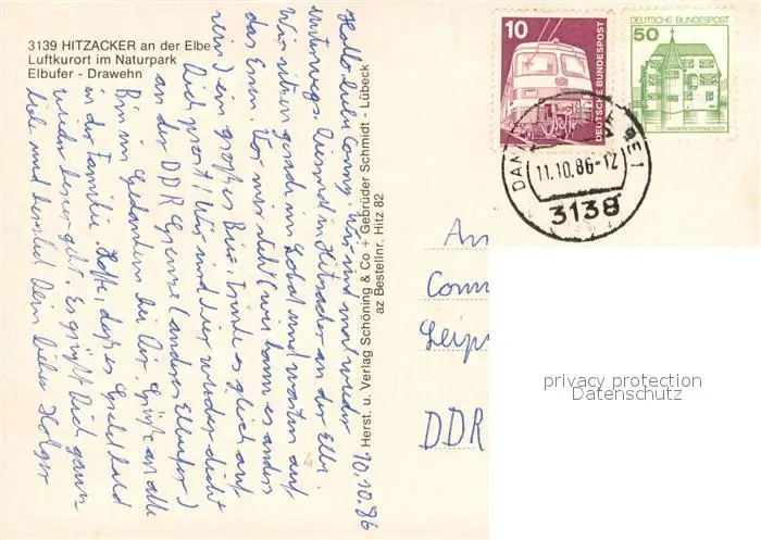 Hitzacker_Elbe Kirche Elbufer Drawehn Hitzacker Elbe postalisch gelaufen 1986 Erhaltung siehe scans [WerneD78] WernPID7