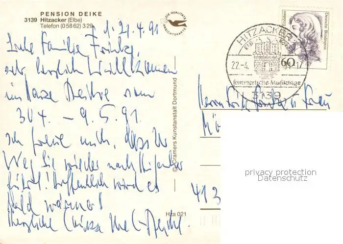Hitzacker_Elbe Pension Deike Aussenansicht Hitzacker Elbe postalisch gelaufen 1991 Erhaltung siehe scans [LiesaD40] LiesID40