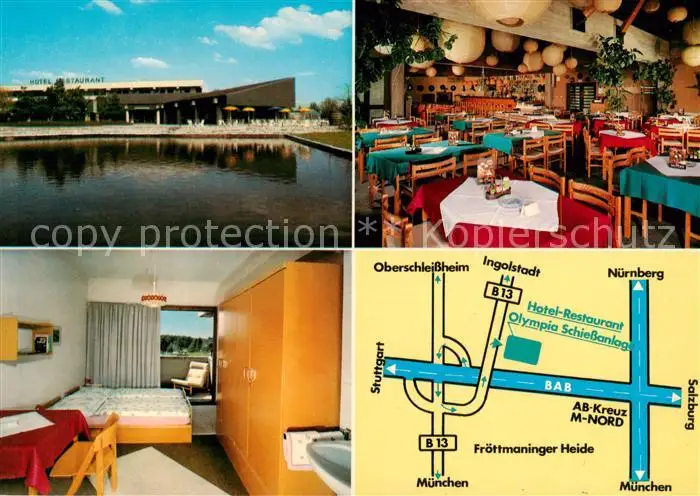 AK / Ansichtskarte Hochbrueck_Muenchen Hotel Restaurant Olympia Schiessanlage Gastraum Zimmer Hochbrueck Muenchen