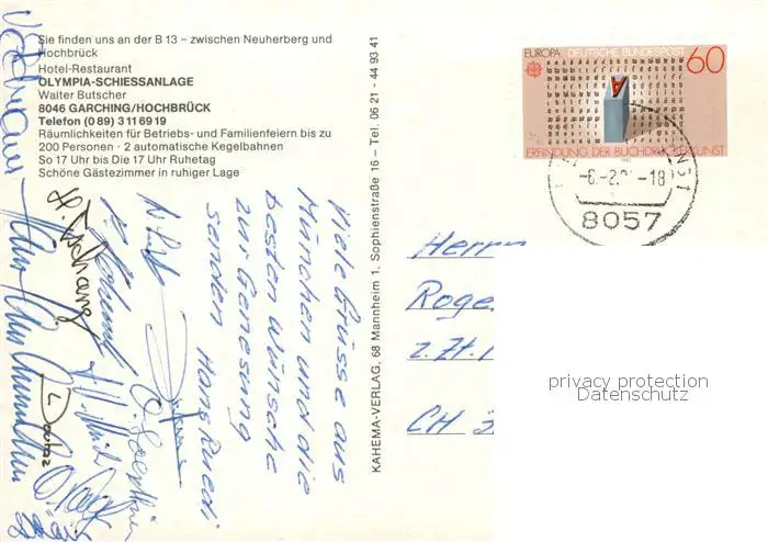 Hochbrueck_Muenchen Hotel Restaurant Olympia Schiessanlage Gastraum Zimmer Hochbrueck Muenchen postalisch gelaufen nach 1965 Erhaltung siehe scans [WerneD78] WernPID7