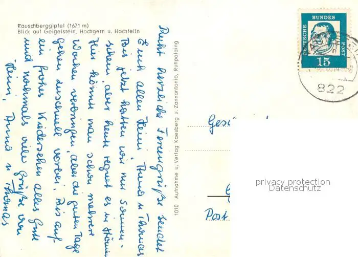 Hochfelln_Ruhpolding Rauschberggipfel Geigelstein Hochgern Hochfelln Ruhpolding postalisch gelaufen 1921-1965 Erhaltung siehe scans [KathaD81] Kathoren