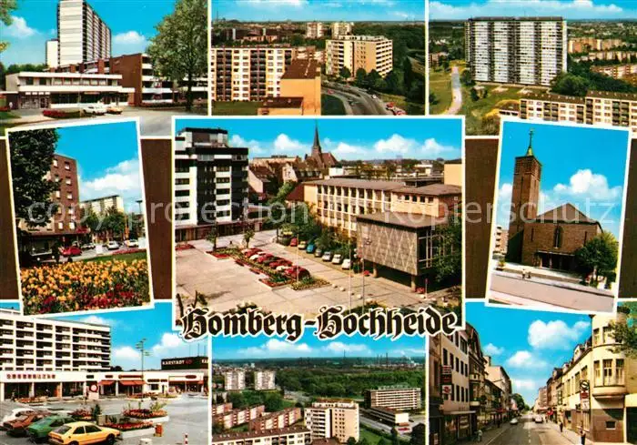 Hochheide Kategorie Alte Ansichtskarten Postkarten bx51637 Hochheide Teilansichten Hochhaeuser Platz Strassenpartie Kirche Hochheide postalisch nicht gelaufen nach 1965 Erhaltung siehe scans [FriedD77]