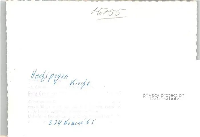 Hochspeyer Kirche Hochspeyer postalisch nicht gelaufen 1965 Verlagsrohabzug (keine Postkartenrueckseite) Erhaltung siehe scans [FriedD77] Verlagsrohabzug (keine Postkartenrueckseite) Frierer