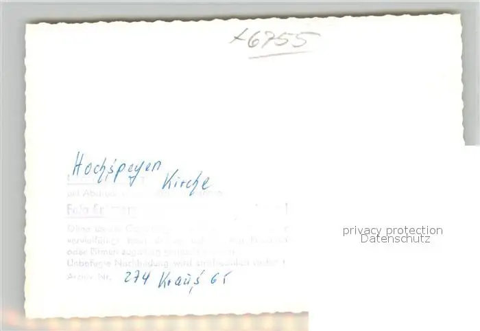 Hochspeyer Kirche Hochspeyer postalisch nicht gelaufen 1965 Verlagsrohabzug (keine Postkartenrueckseite) Erhaltung siehe scans [FriedD77] Verlagsrohabzug (keine Postkartenrueckseite) Frierer