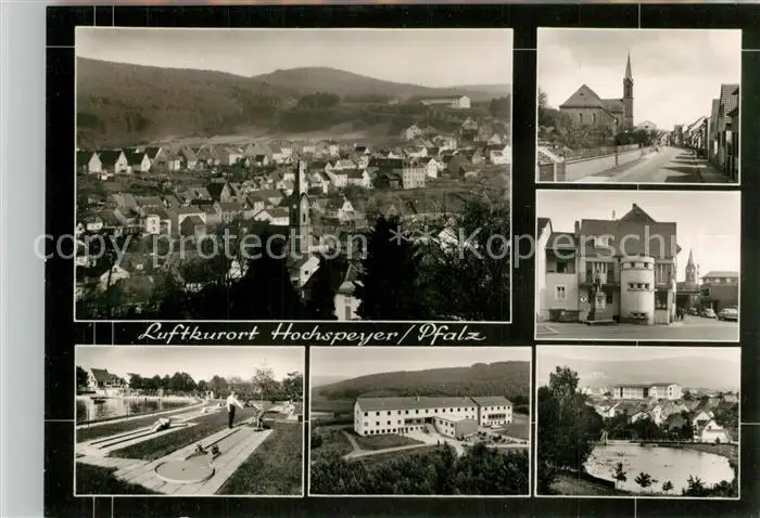 AK / Ansichtskarte Hochspeyer Stadtpanorama Motive Innenstadt See Minigolf Naturpark Jugendherberge Lehrgangsstaette Bromsilber Hochspeyer