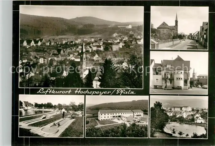 AK / Ansichtskarte Hochspeyer Stadtpanorama Strassenpartien See Minigolf Bromsilber Hochspeyer