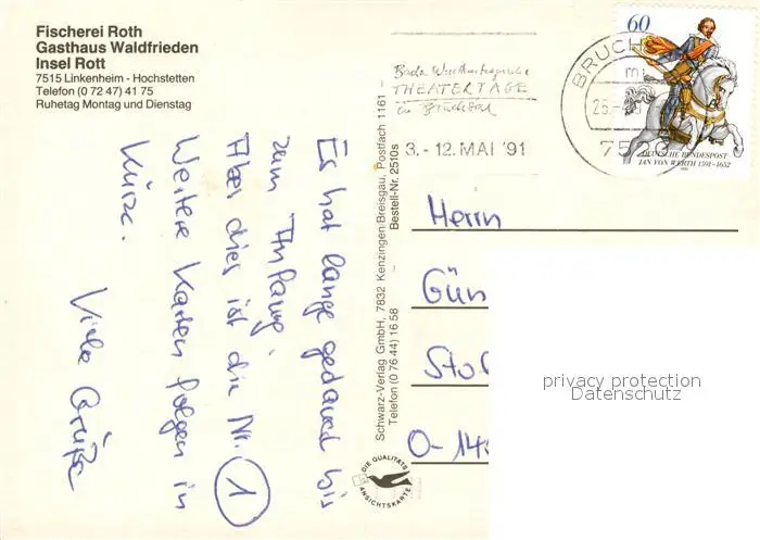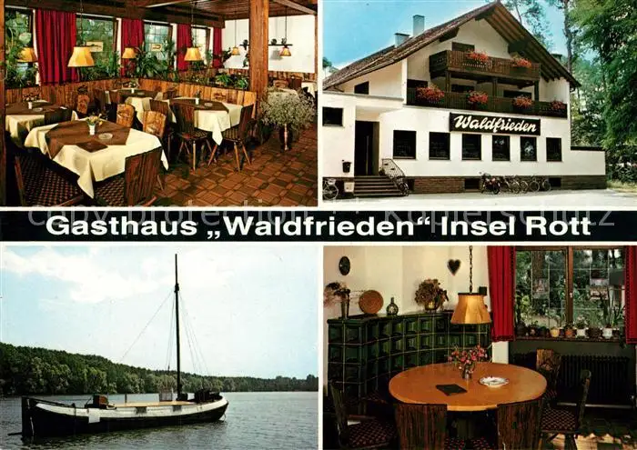 Hochstetten_Linkenheim-Hochstetten Fischerei Gasthaus Waldfrieden Insel Rott Fischerboot Hochstetten postalisch gelaufen 1991 Erhaltung siehe scans [FriedD77] Frierer