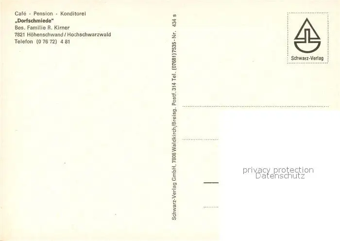 Hoechenschwand Cafe Pension Konditorei Dorfschmiede Schwarzwald Hoechenschwand postalisch nicht gelaufen nach 1965 Erhaltung siehe scans [FriedD77] Frierer