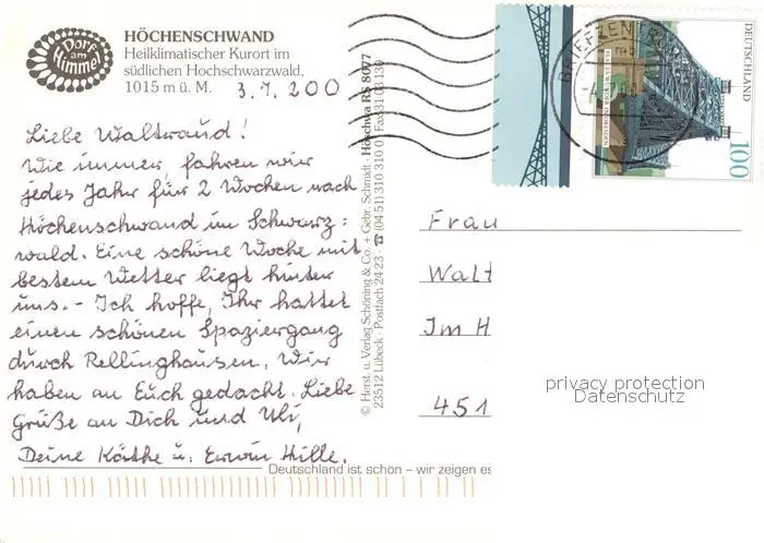 Hoechenschwand Fliegeraufnahme Hoechenschwand postalisch gelaufen 2000 Erhaltung siehe scans [WerneD78] WernPID7