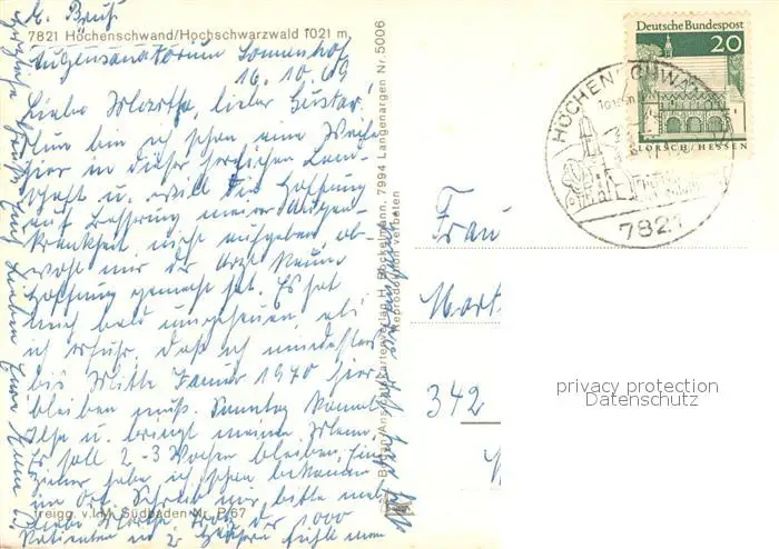 Hoechenschwand Fliegeraufnahme Hoechenschwand postalisch gelaufen 1969 Erhaltung siehe scans [WerneD78] WernPID7