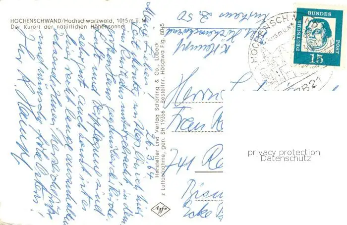 Hoechenschwand Fliegeraufnahme Teilansicht Hoechenschwand postalisch gelaufen 1964 Erhaltung siehe scans [LiesaD40] LiesID40