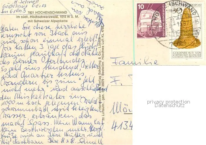 Hoechenschwand Fliegeraufnahme mit Schweizer Alpenkette Hoechenschwand postalisch gelaufen 1977 Erhaltung siehe scans [WerneD78] WernPID7