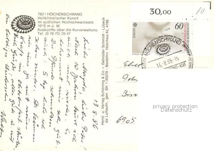 Hoechenschwand Kurort im Schwarzwald Alpenblick Fliegeraufnahme Hoechenschwand postalisch gelaufen 1986 Erhaltung siehe scans [FriedD77] Frierer