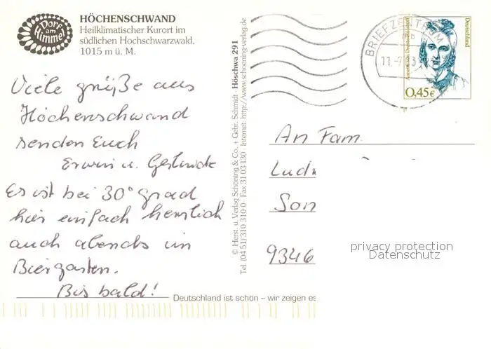 Hoechenschwand Kurort im Suedschwarzwald Fliegeraufnahme Hoechenschwand postalisch gelaufen 2003 Erhaltung siehe scans [FriedD77] Frierer