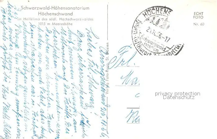 Hoechenschwand Schwarzwald Hoehensanatorium Hoechenschwand postalisch gelaufen 1956 Erhaltung siehe scans [WerneD78] WernPID7