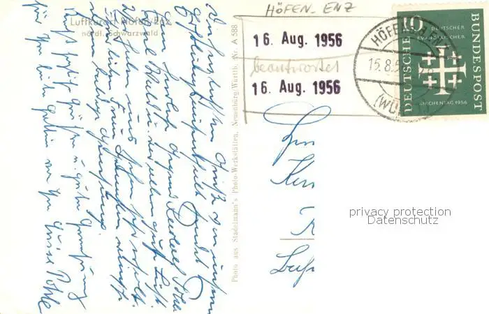 Hoefen_Enz Ansicht mit Kirche Luftkurort im Schwarzwald Hoefen_Enz postalisch gelaufen 1956 Erhaltung siehe scans [FriedD77] Frierer