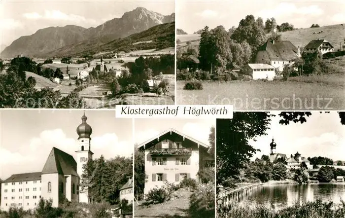 Hoeglwoerth Klostergasthof am See Klosterkirche Landschaftspanorama Alpen Hoeglwoerth postalisch nicht gelaufen 1921-1965 Erhaltung siehe scans [FriedD77] Frierer