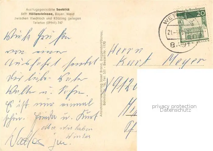 Hoellensteinsee Ausflugsgaststaette Seeblick Hoellensteinsee postalisch gelaufen 1969 Erhaltung siehe scans [FriedD77] Frierer