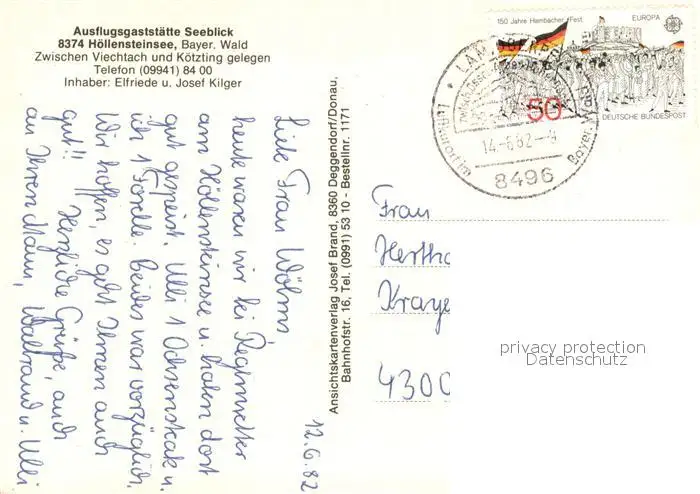 Hoellensteinsee Ausflugsgaststaette Seeblick Terrasse Staumauer Gastraum Hoellensteinsee postalisch gelaufen 1982 Erhaltung siehe scans [WerneD78] WernPID7
