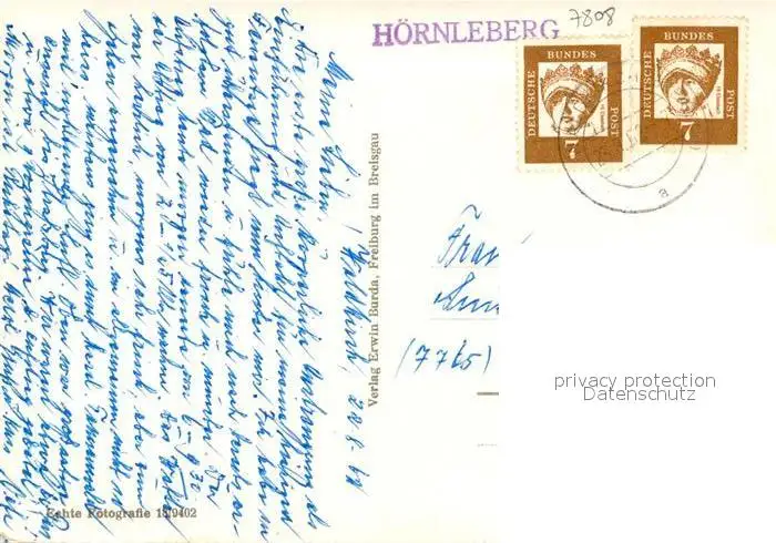 Hoernleberg Landschaftspanorama Schwarzwald Marien Wallfahrtskapelle Oberwinden Elzach Simonswald Waldkirch Kandel Hoernleberg postalisch gelaufen 1962 Erhaltung siehe scans [FriedD77] Frierer