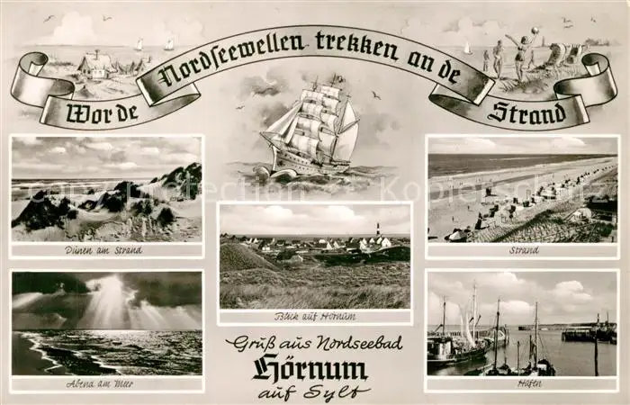 Hoernum_Sylt Duenen Strand Abend am Meer Hafen Segelboot Hoernum Sylt postalisch nicht gelaufen nach 1965 Erhaltung siehe scans [FriedD77] Frierer