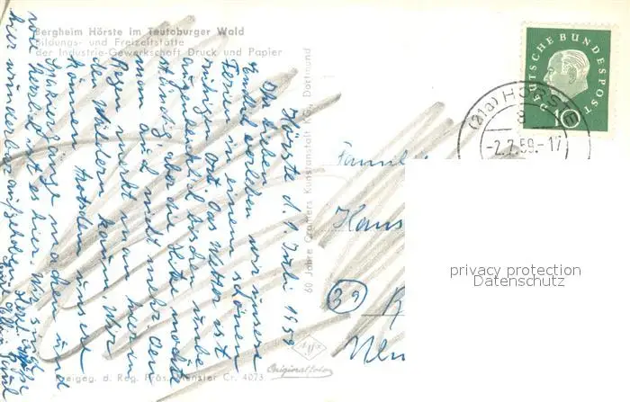 Hoerste_Lippe Bergheim Hoerste im Teutoburger Wald Fliegeraufnahme Hoerste_Lippe postalisch gelaufen 1959 Erhaltung siehe scans [WerneD78] WernPID7