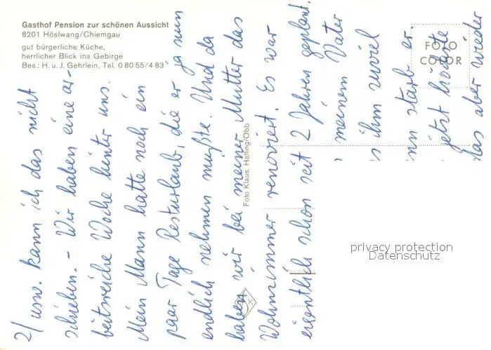 Hoeslwang Gasthof Pension zur schoenen Aussicht Gaststube Seepartie Kirche Hoeslwang postalisch nicht gelaufen nach 1965 Erhaltung siehe scans [WerneD78] WernPID7