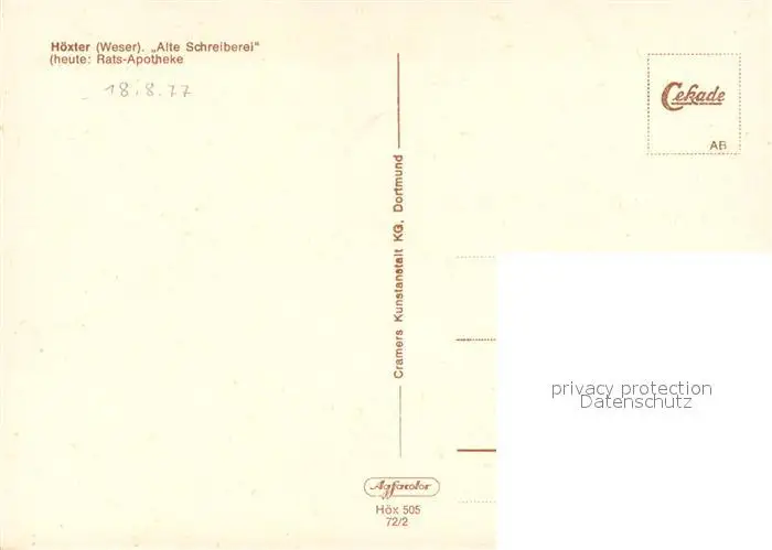 Hoexter_Weser Alte Schreiberei Fachwerk Hoexter Weser postalisch nicht gelaufen nach 1965 Erhaltung siehe scans [KathaD81] Kathoren
