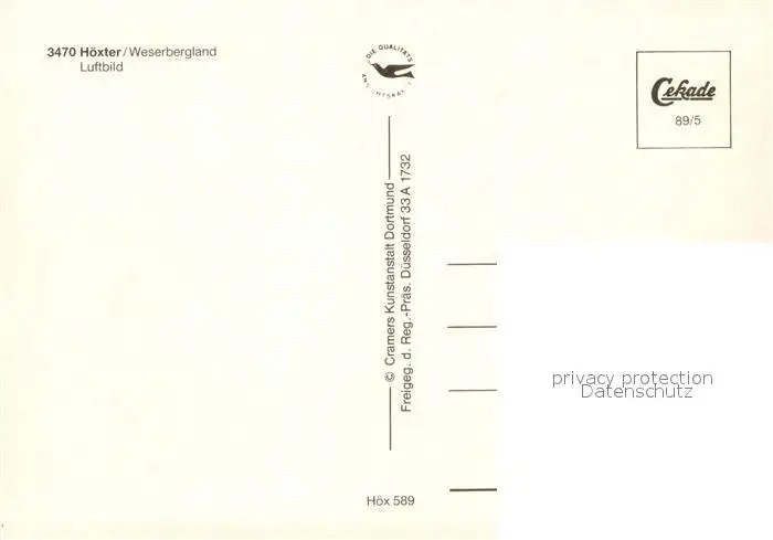 Hoexter_Weser Fliegeraufnahme Hoexter Weser postalisch nicht gelaufen nach 1965 Erhaltung siehe scans [WerneD78] WernPID7