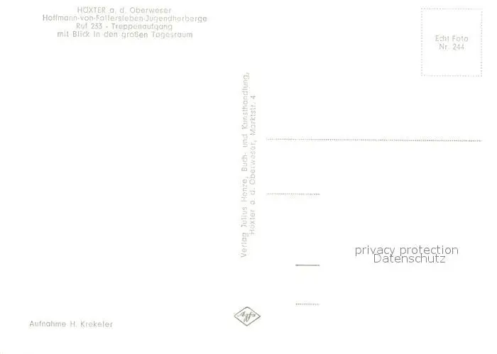 Hoexter_Weser Hoffmann von Fallersleben Jugendherberge Treppenaufgang Tagesraum Hoexter Weser postalisch nicht gelaufen 1921-1965 Erhaltung siehe scans [FriedD77] Frierer