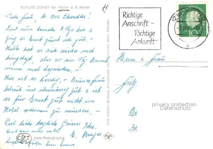 Hoexter_Weser Schloss Corvey Fliegeraufnahme Hoexter Weser postalisch gelaufen 1961 Erhaltung siehe scans [FriedD77] Frierer