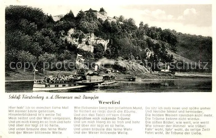 AK / Ansichtskarte Hoexter_Weser Schloss Fuerstenberg Ausflugsdampfer Weserlied Hoexter Weser