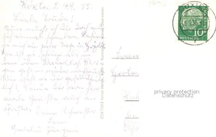 Hoexter_Weser Schloss Fuerstenberg Ausflugsdampfer Weserlied Hoexter Weser postalisch gelaufen 1955 Erhaltung siehe scans [WerneD78] WernPID7