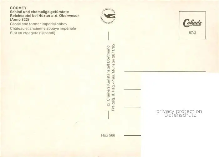 Hoexter_Weser Schloss Reichsabtei Fliegeraufnahme Hoexter Weser postalisch nicht gelaufen 1987 Erhaltung siehe scans [FriedD77] Frierer