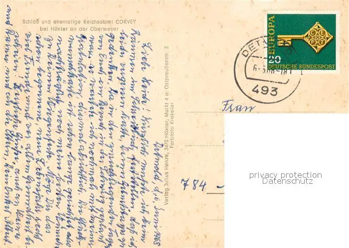 Hoexter_Weser Schloss und ehem Reichsabtei Corvey Hoexter Weser postalisch gelaufen 1968 Erhaltung siehe scans [FriedD77] Frierer