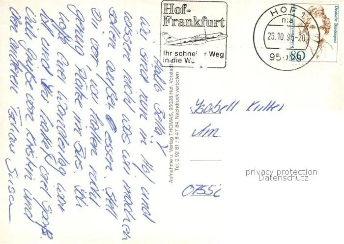 Hof_Saale Bahnhof Marienkirche Hofbad Rathaus Parkanlage Hof_Saale postalisch gelaufen 1995 Erhaltung siehe scans [KathaD81] Kathoren