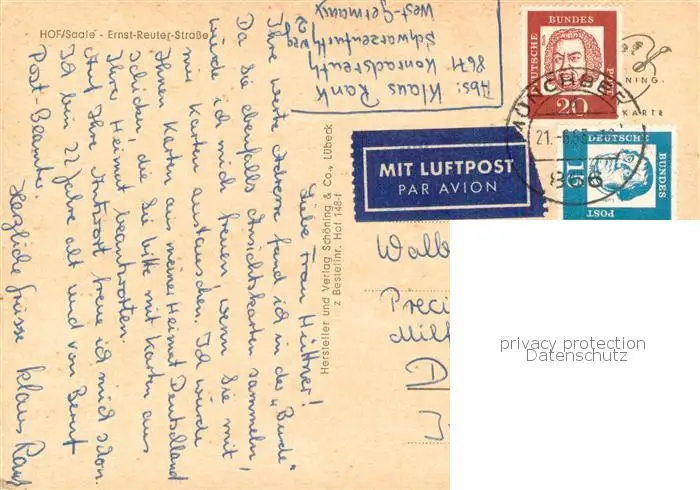Hof_Saale Ernst Reuter Strasse Hof_Saale postalisch gelaufen 1963 Erhaltung siehe scans [FriedD77] Frierer