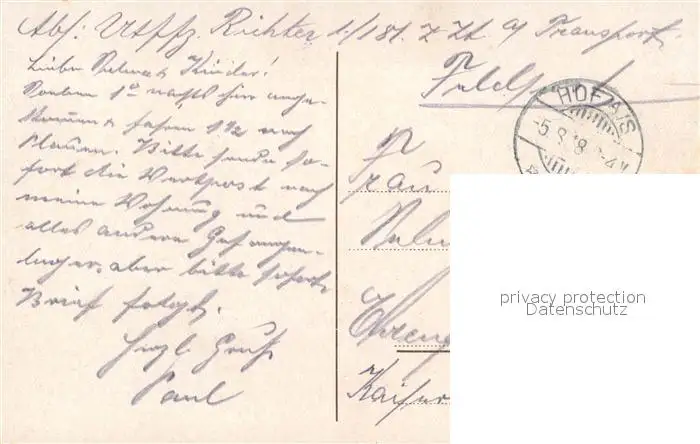 Hof_Saale Restaurant Theresienstein Hof_Saale postalisch gelaufen 1918 Feldpost - Stempel Erhaltung siehe scans [LiesaD40] Feldpost - Stempel LiesID40